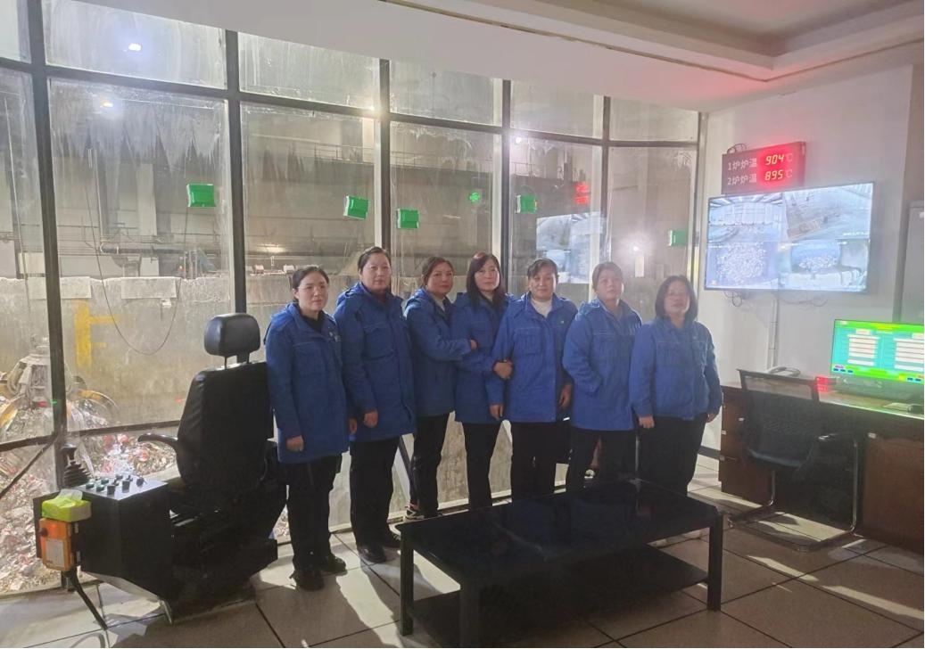 她们是来自红安公司燃运班组的石爱娣、王凤珍、姜君凤、李爱荣、张金娥、程家玉、丁玲,每日坚守在垃圾发电厂的绝对一线。垃圾转运至项目垃圾库后、由她们负责储料池垃圾的掺配、取料、进料及渣料的装车转运等工作。日常工作虽然繁琐且辛苦,但她们说每天看着一座座垃圾山在自己的操作下投入焚烧炉、转为清洁能源、再化作万家灯火,就能感受到满满的幸福。
