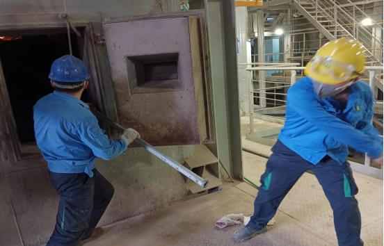 2022年4月9日,章丘项目#2炉燃尽段炉排出现脱落,导致炉排机械负荷受限,锅炉负荷骤降。经研讨后最终确定采用临时压火快速抢修的检修方案,待炉温降至450℃以下时,检修人员身着防烫工作服、系安全带,进入燃尽段炉排脱落处,拆卸损坏炉排并完成炉排片的安装。整个操作流程环环相扣,必须要在4小时内完成。方案确定后,设备部商朝俊克服高温、勇挑重担,顺利更换脱落的4块炉排及风室磨损严重的2个拖轮,维修时间比计划缩短半个小时,保障了项目的正常生产与运营。