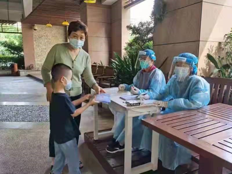 当深圳宣布按下“慢行键”时,集团纪检工作部党员曹温莲第一时间报名参加社区核酸检测志愿者工作,协助小区近200户居民按照规定进行核酸检测,由于小区老人居多,耐心解释沟通并逐一登记是一项充满挑战的工作。在深圳近30度的炎热天气下,穿着闷热的防护服,戴着双层口罩和面罩,豆大的汗水直流,但想想更加辛苦的工作人员,她一直坚持到检测点全部清场工作结束后才离开。
